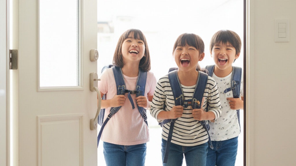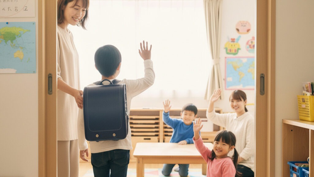 子どもたちは自分の力で荷物をまとめ、忘れ物がないかを確認し、帰る準備を整えます。