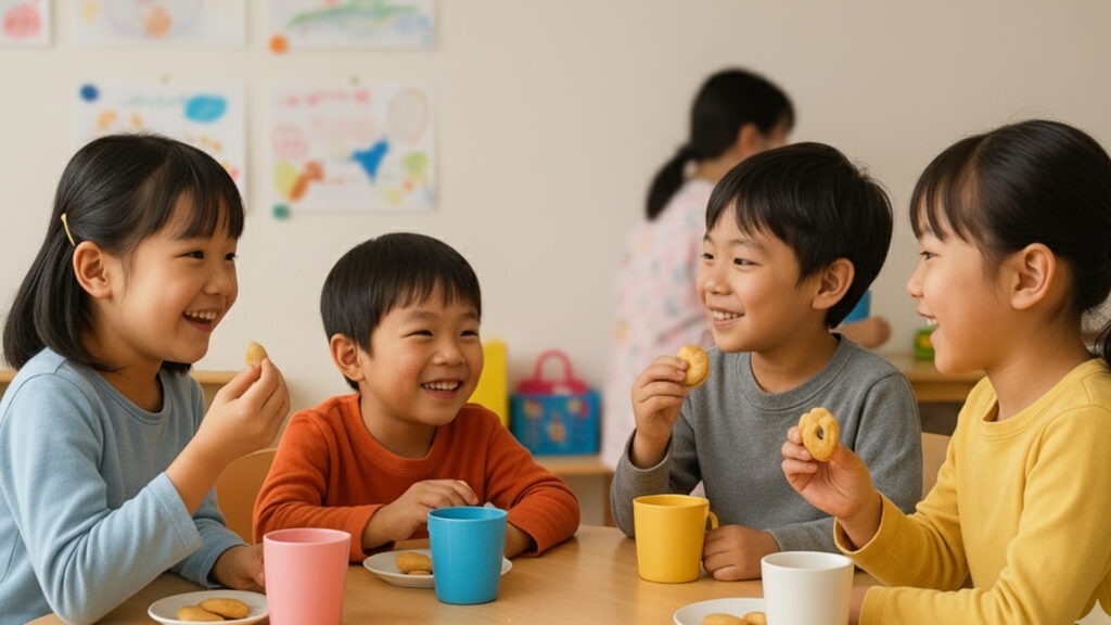学校から帰ってきたら、手洗い・うがいを済ませて、みんなでおやつ。